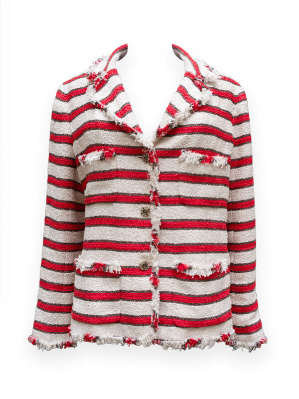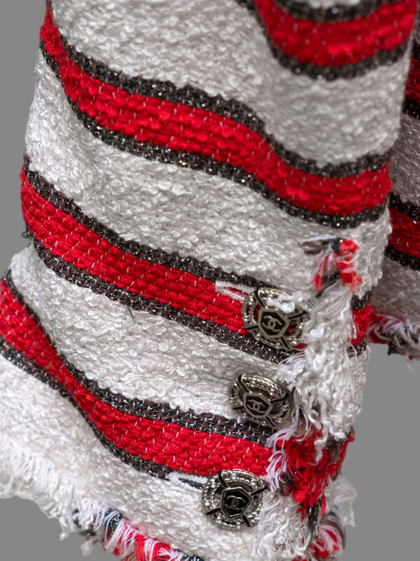 Sautoir à perles fantaisie blanches et rouges avec sigles CC en métal doré et email rouge