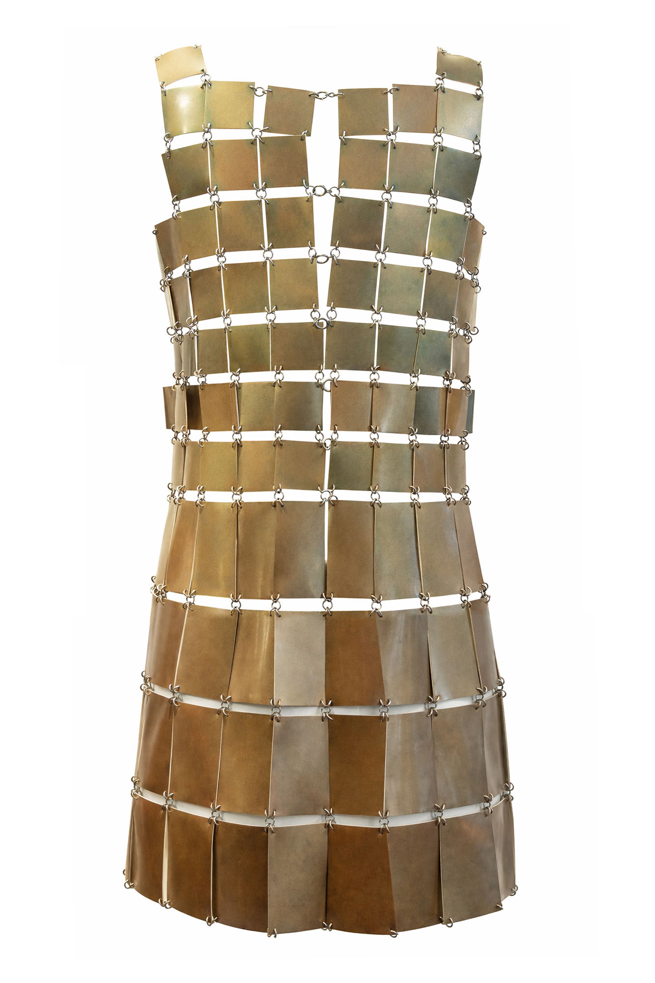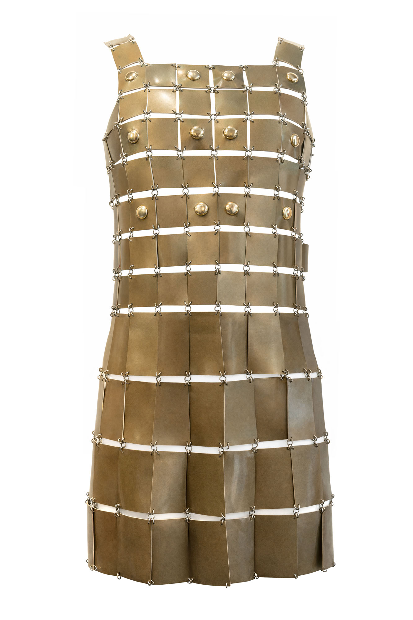 Robe en rhodoïde, année 1968. Couleur or vielli